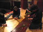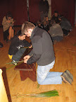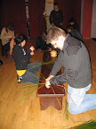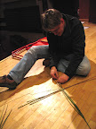 Do dużego garnka wlewamy wodę w granicach 10-15 litrów. Miękki papier toaletowy drzemy na kawałki i dodając go stopniowo do wody zaczynamy papier i wodę mieszać. Pamiętajmy o stopniowym dodawaniu papieru do wody. Mieszamy wszystko do uzyskania w miarę jednolitej masy. Kolejnym etapem jest dodanie do masy krochmalu i mieszamy delikatnie aż wszystkie składniki dobrze się połączą. A teraz zaczynamy czerpać. Przelewamy masę z garnka do miski aby było nam wygodniej i zanurzając sito nabieramy na nie niewielką ilość masy. Sito można bez problemu wykonać własnoręcznie. Na starą ale solidną ramkę należy naciągnąć stalową, bardzo gęstą siateczkę i przytwierdzić ją przy pomocy gwoździków. Kiedy nadmiar wody spłynie z sitka kładziemy ramkę na podłożu i uprzednio przygotowaną miękką szmatką nakrywamy masę i delikatnie dociskamy dłonią. Odwracamy ramkę wraz ze szmatką, na której teraz znajduje się masa papierowa i jeszcze raz odciskamy nadmiar wody. Delikatnie ale szybko zdejmujemy sitko - na szmatce pozostaje osuszona wstępnie masa papierowa. Następnie należy tę masę pozostawić na minimum 7 dni dla wyschnięcia a po tym czasie delikatnym ruchem oderwać od szmatki wysuszony arkusik papieru. Teraz wystarczy wygładzić go kamieniami i mamy gotowe, piękne arkusze czerpanego papieru.