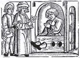 Biskup - tułów skazanego zamykano w wydrążonym drzewie złożonym z dwóch rozsuwających się i przylegających połówek.
